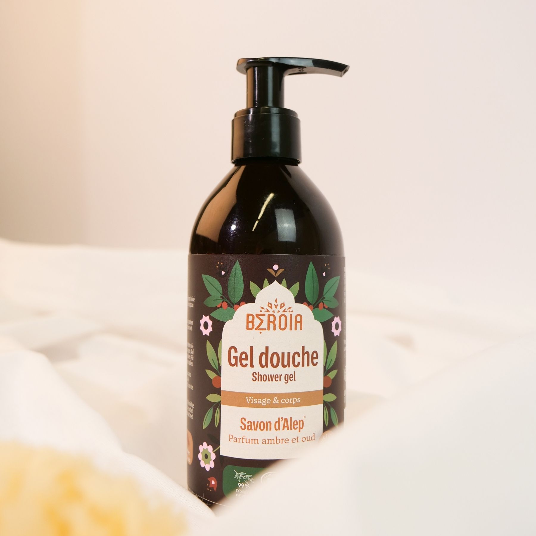 Gel douche au savon d’Alep parfumé à l’Ambre & Oud certifié bio – 300ml