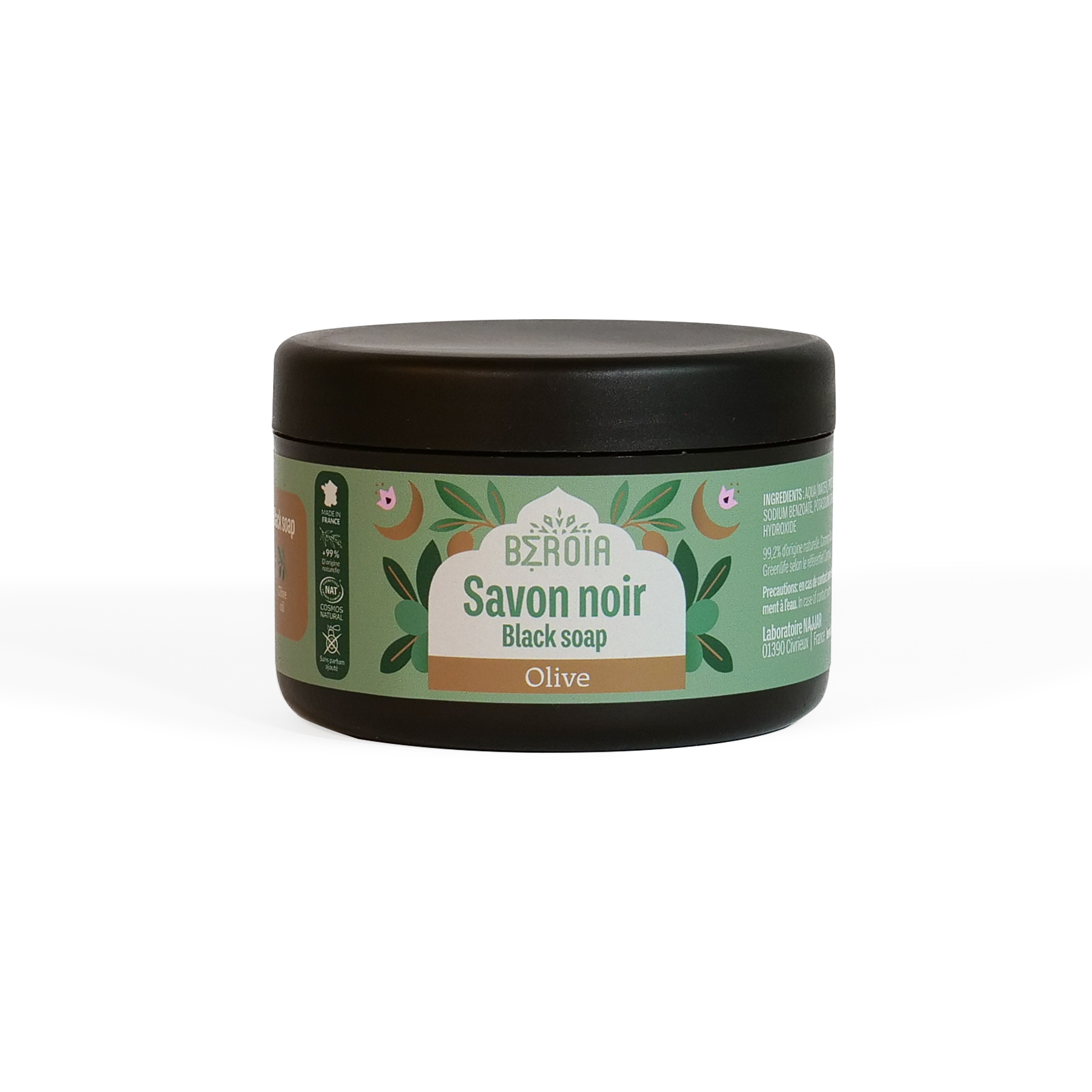 - Formulé principalement avec de l’huile d’olive, ce savon noir reprend un ingrédient central des soins méditerranéens et orientaux.
